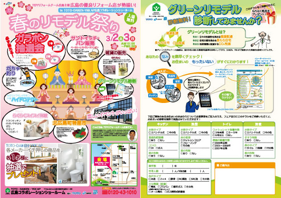 年に4回行われるイベント・リモデル祭りのチラシを担当させていただきました。